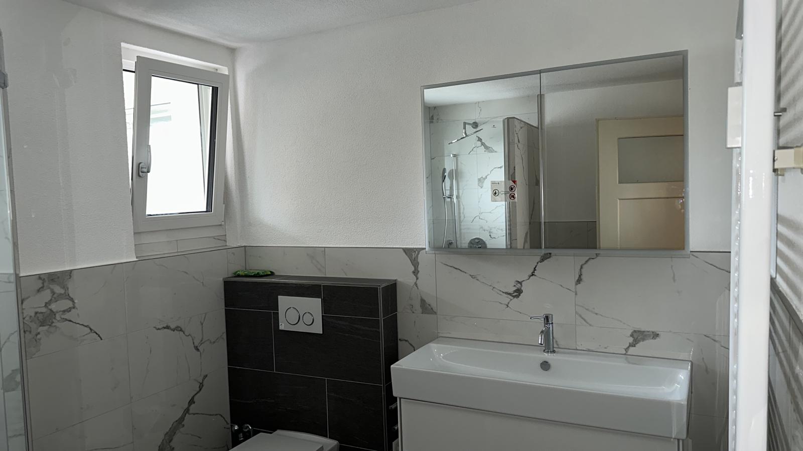 • Barrierefreies Badezimmer, neuer Plattenbelag